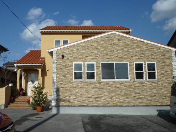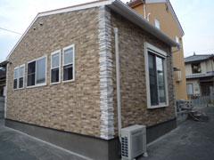 外装はサイディング張りです。角にはブローネストーン調の出隅を取り付けています。