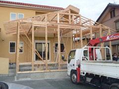 支柱・梁を組み立て、増築部を建設しています。